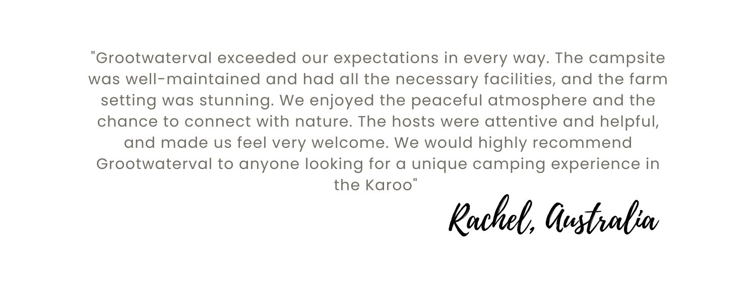 AccommodationGrootwaterval Farm offers a range of accommodation options to suit different tastes and budgets, all of which are designed to provide a comfortable and relaxing stay in the beautiful Karoo region. |