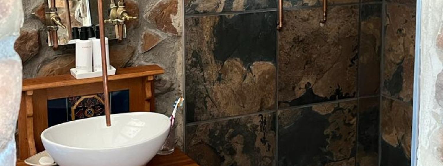 The homely cottage has two bedrooms (one double and two single beds) each with en-suite shower, a pull out sofa in the living room can accommodate two additional guests. There is a fully equipped, open plan kitchen.