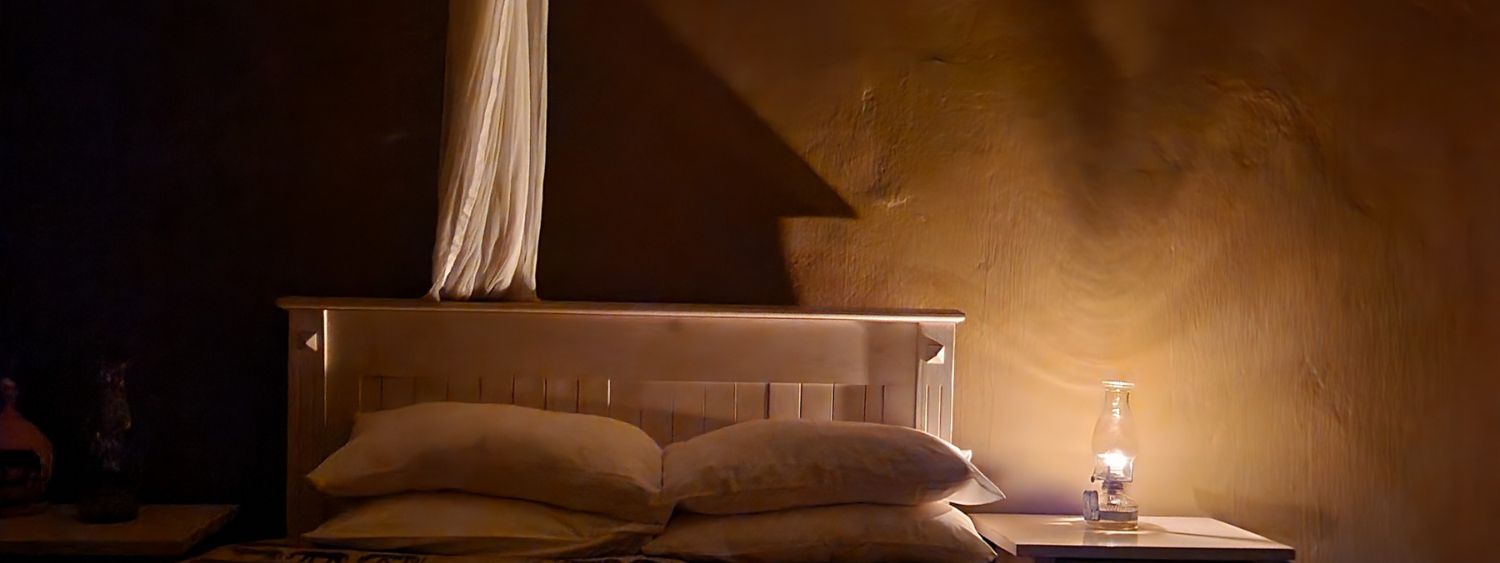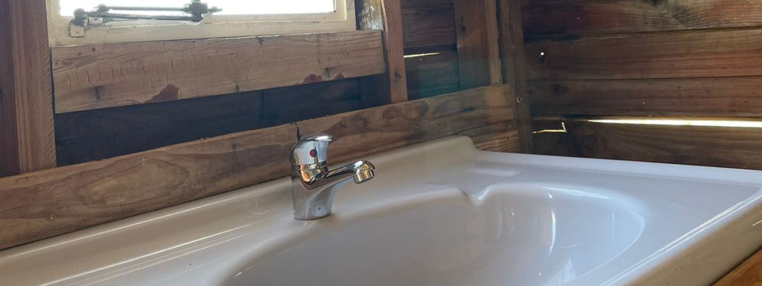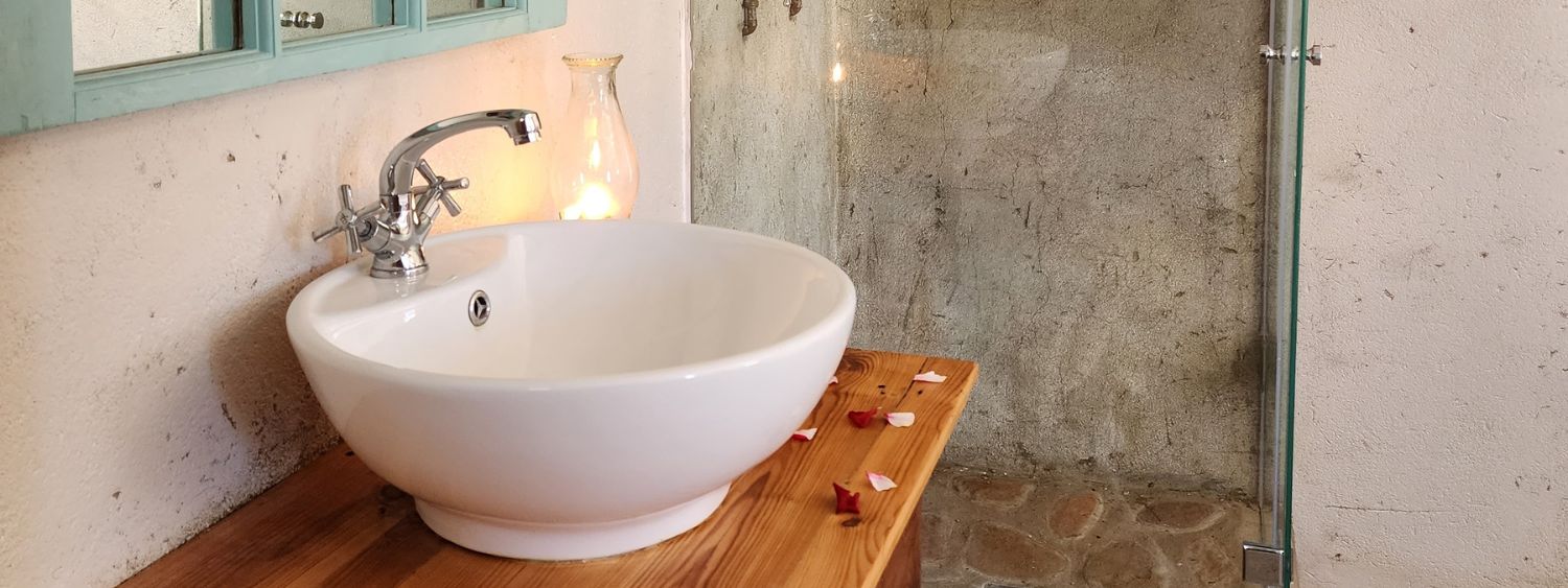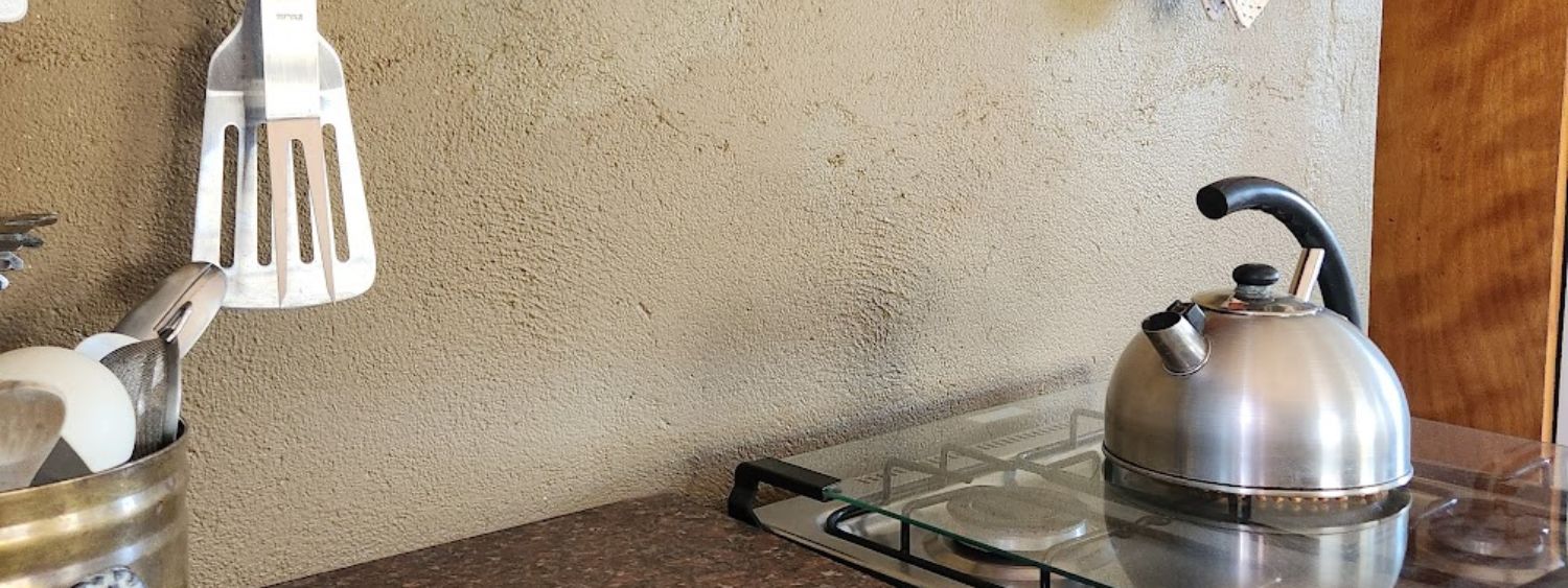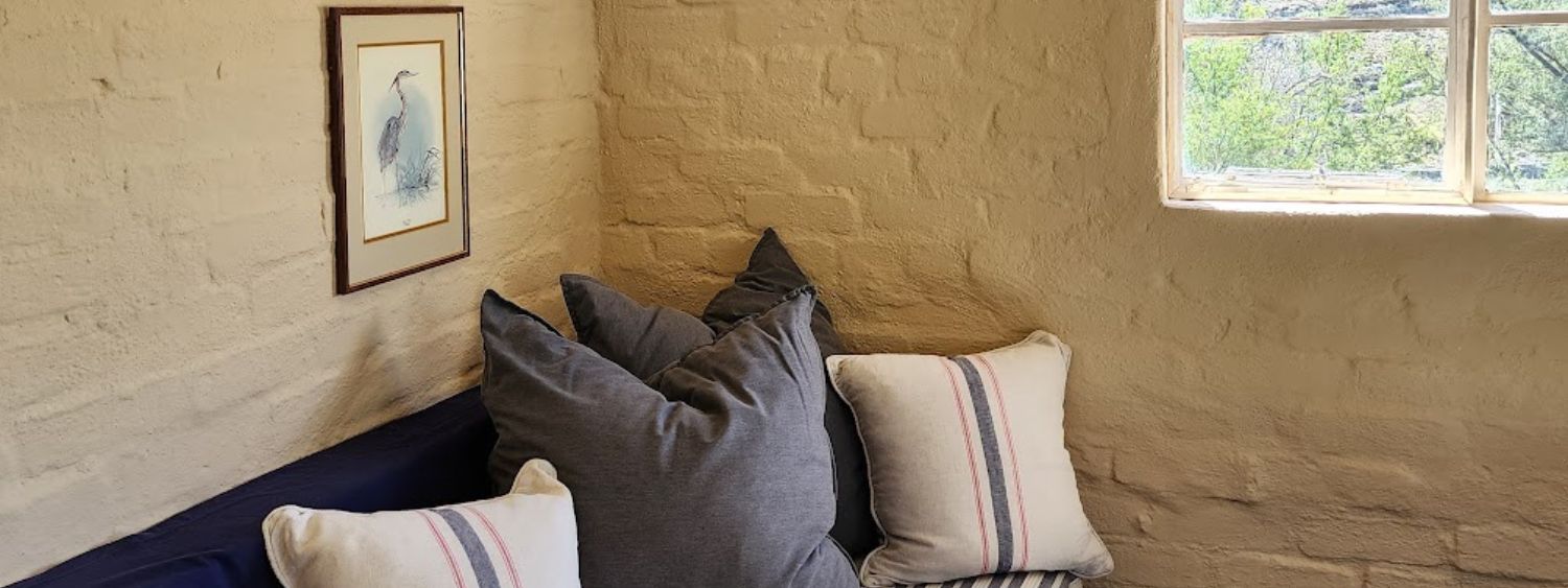 In the main building, there is an open kitchen with everything you need, solar fridge/freezer, gas burner and an Aga stove. On cold winter nights, you can enjoy the cozy inside fireplace in the living room.